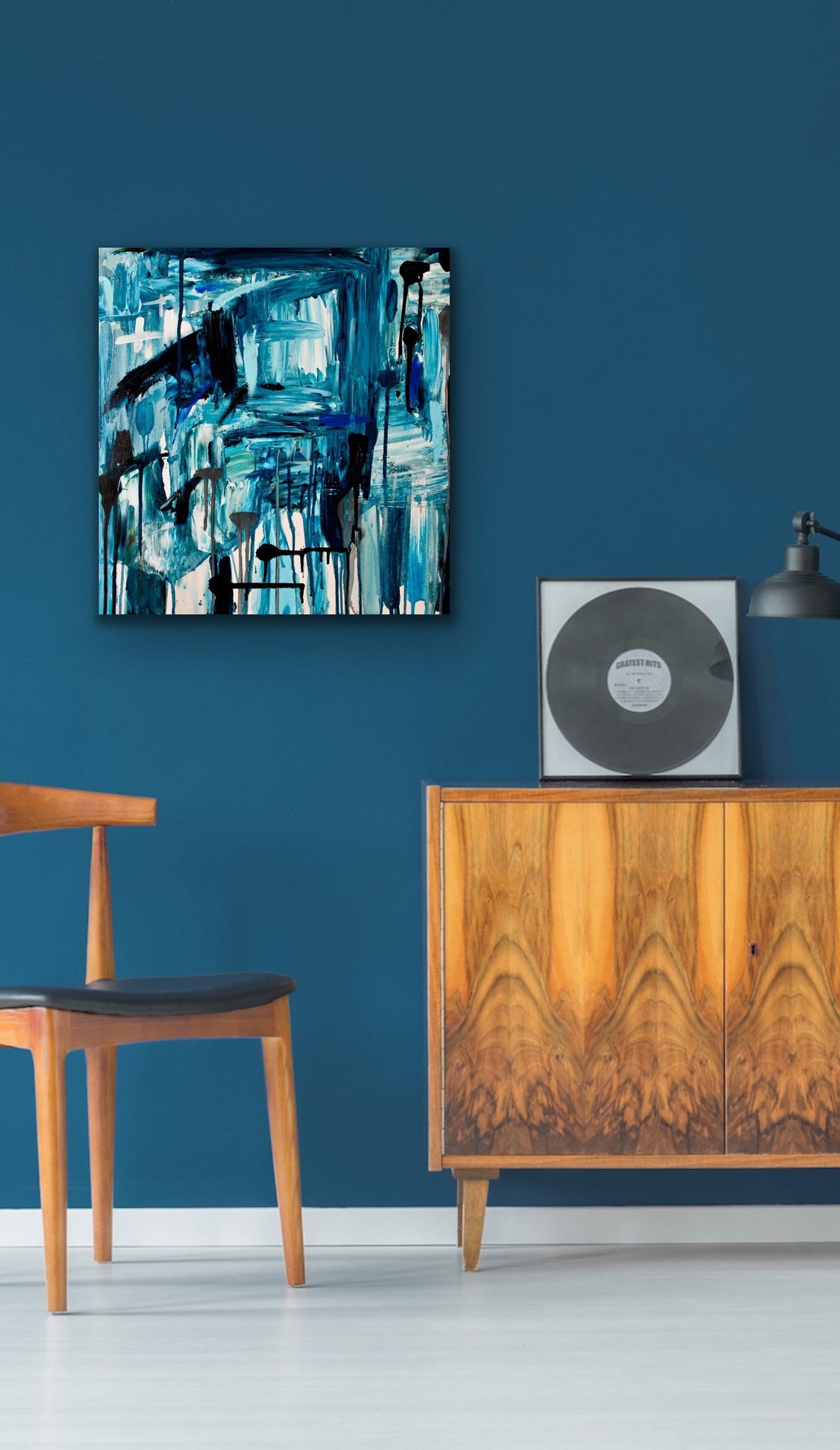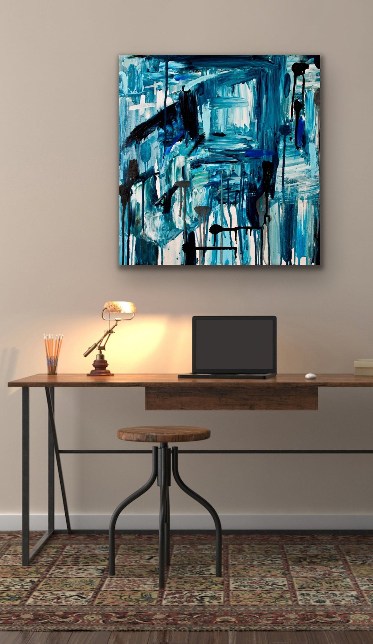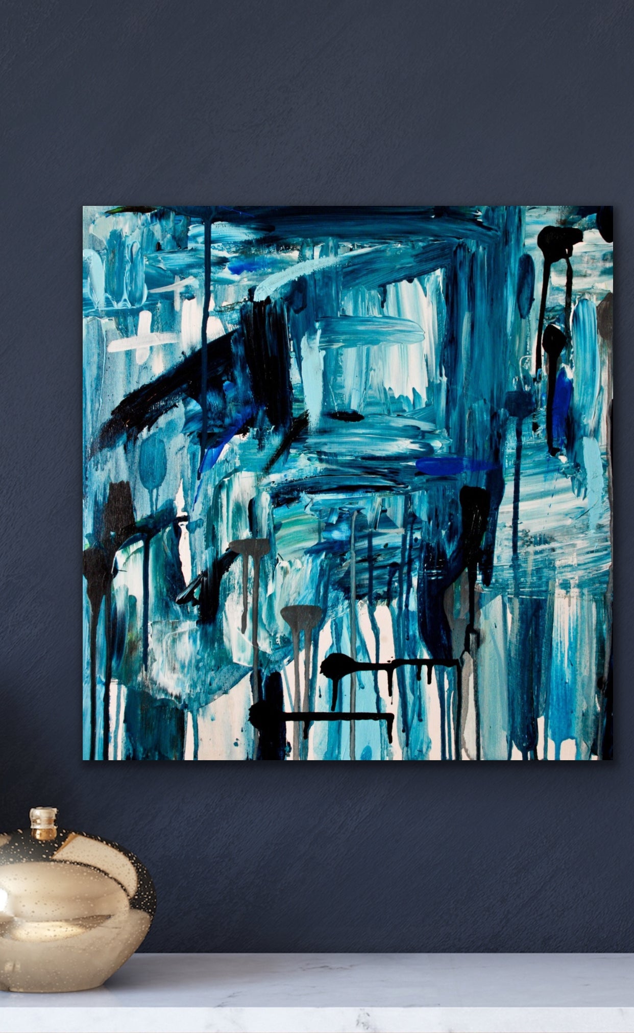 18x18 inches. Original Acrylic on Wood Panel with resin finish .1 inch depth edges.