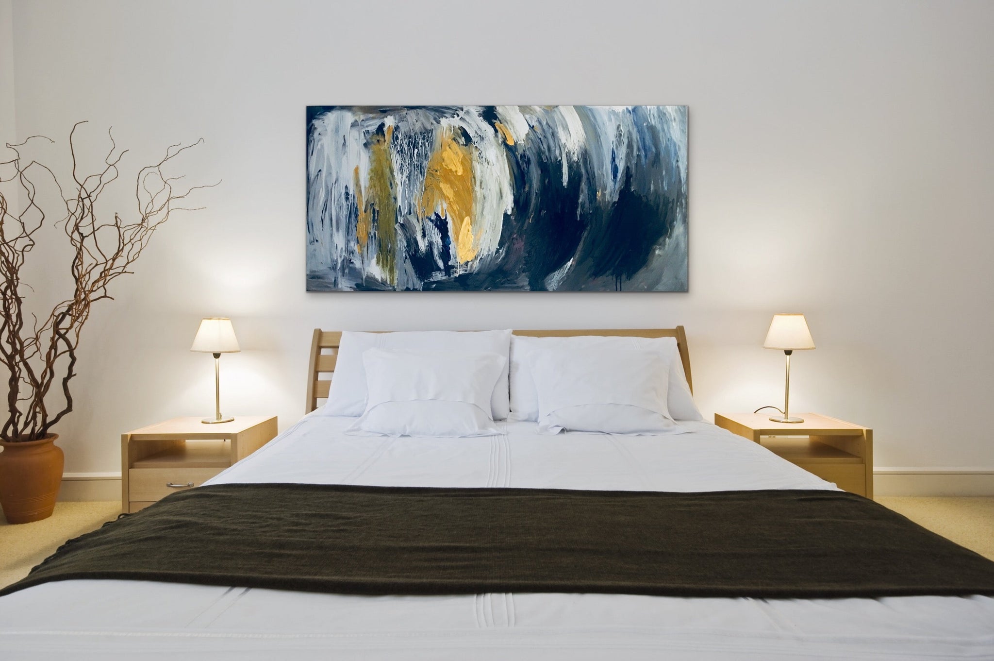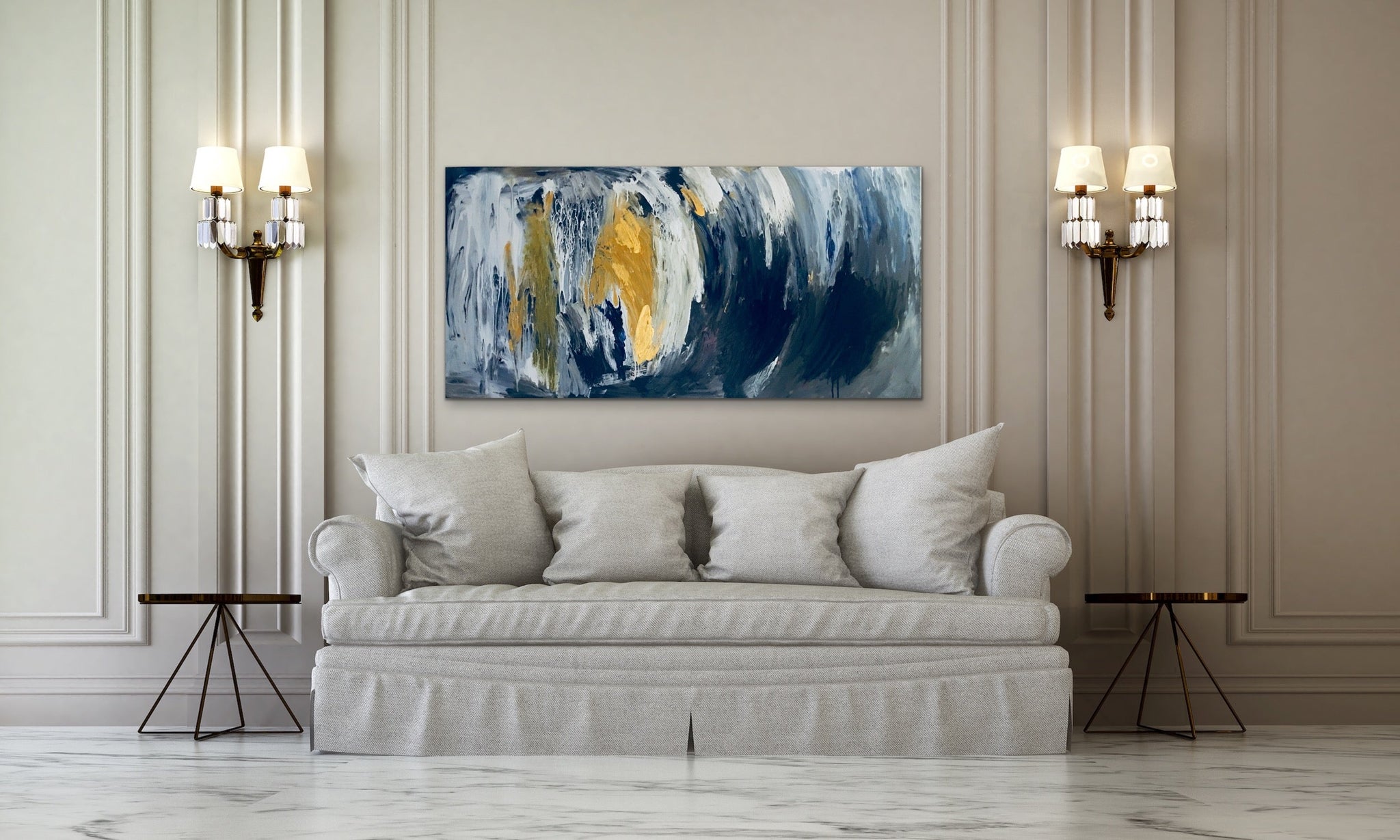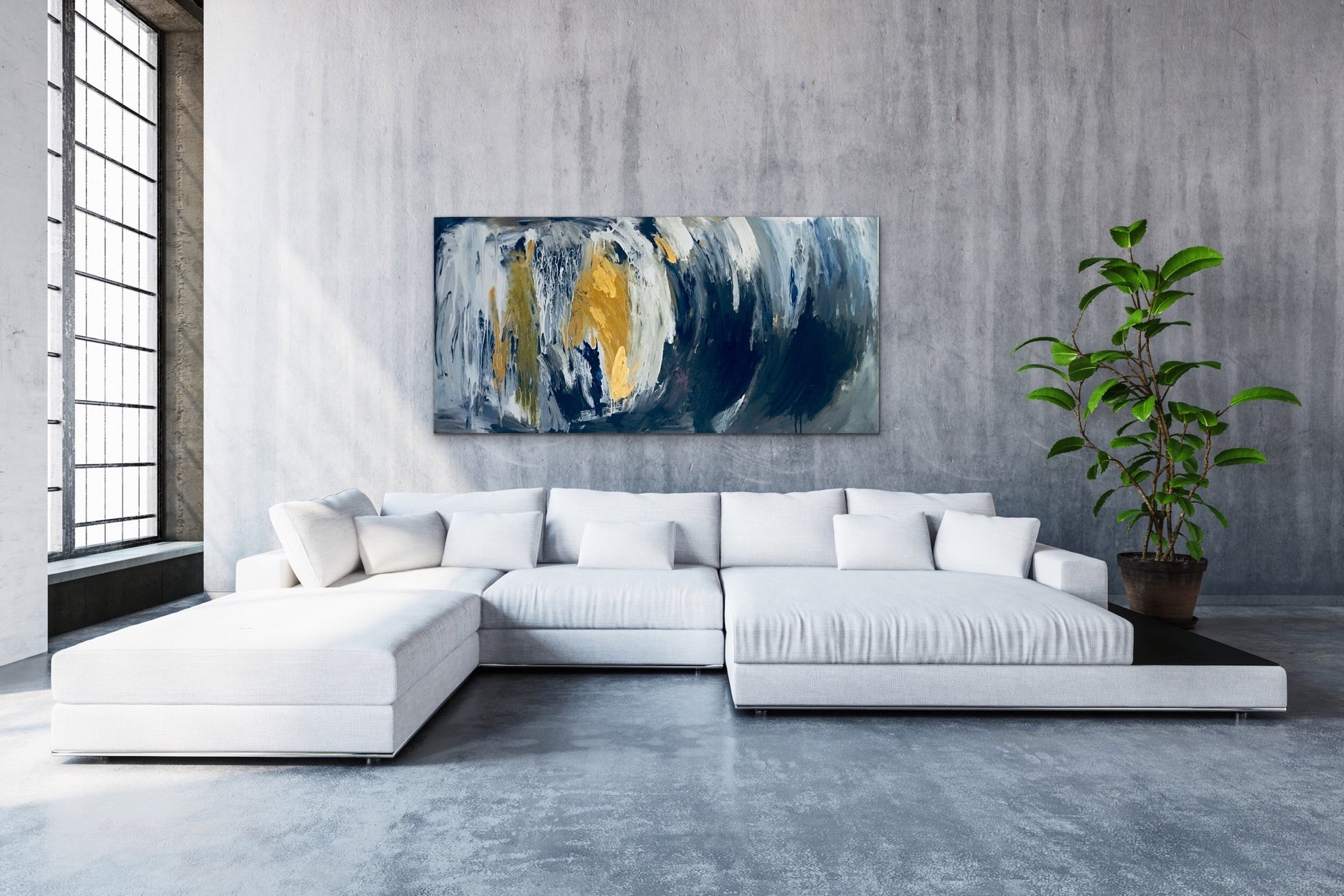 36x48 inches. Original Acrylic, Inks and House Paint on Wood Panel with Glossy Resin Finish, 1.5 inch depth edges.